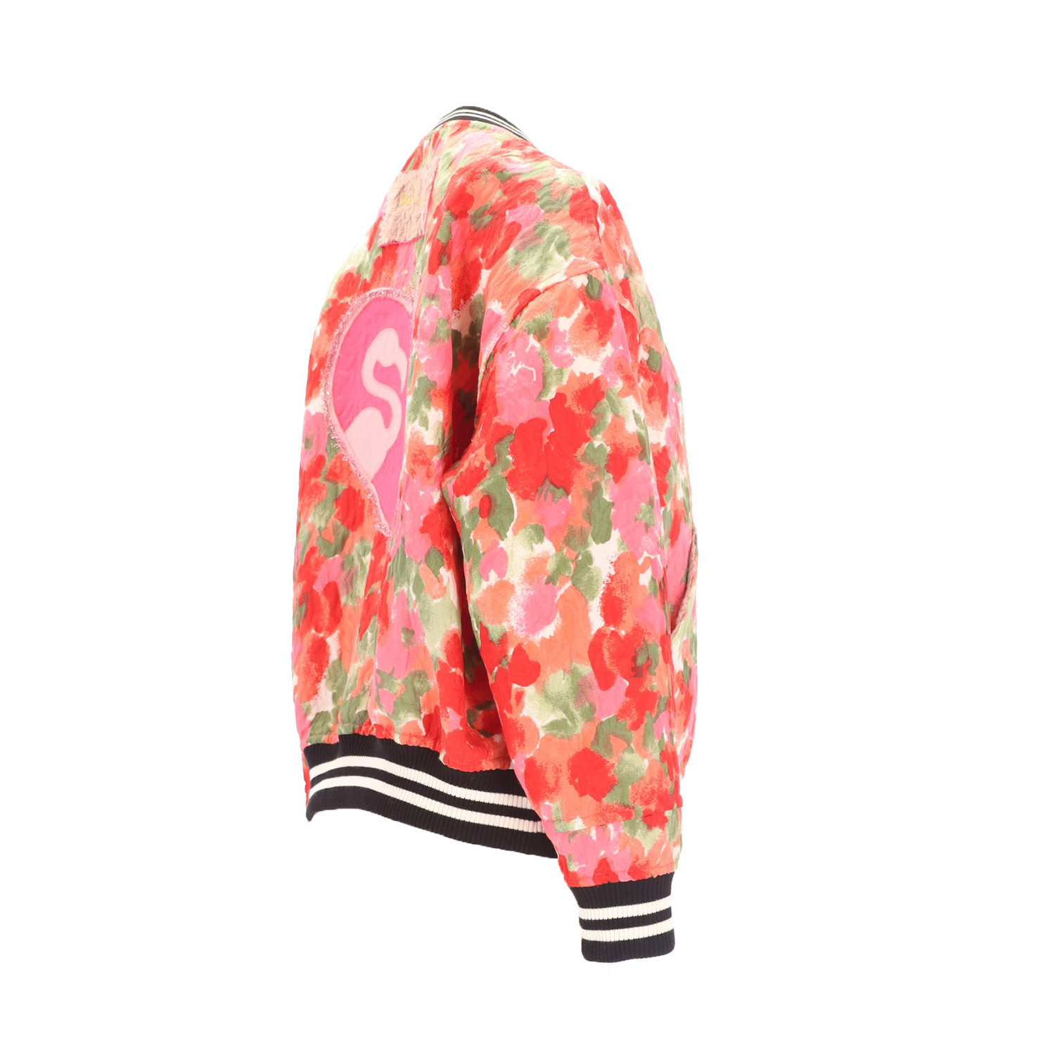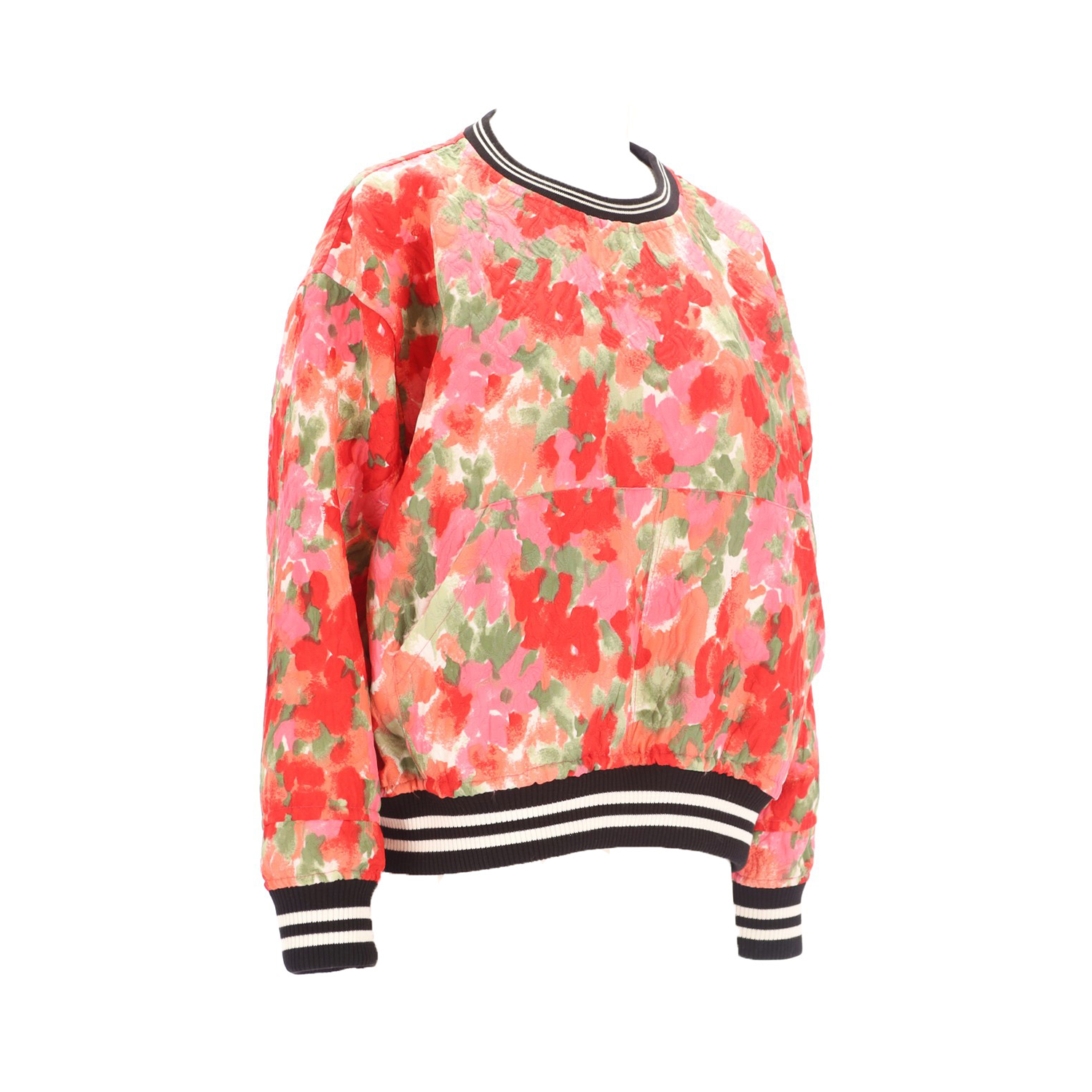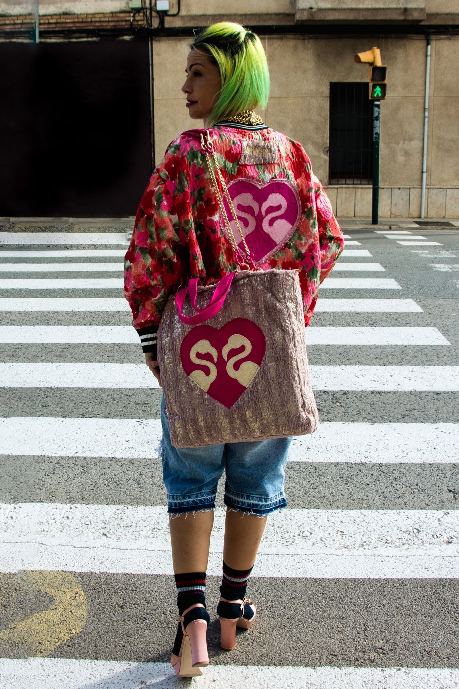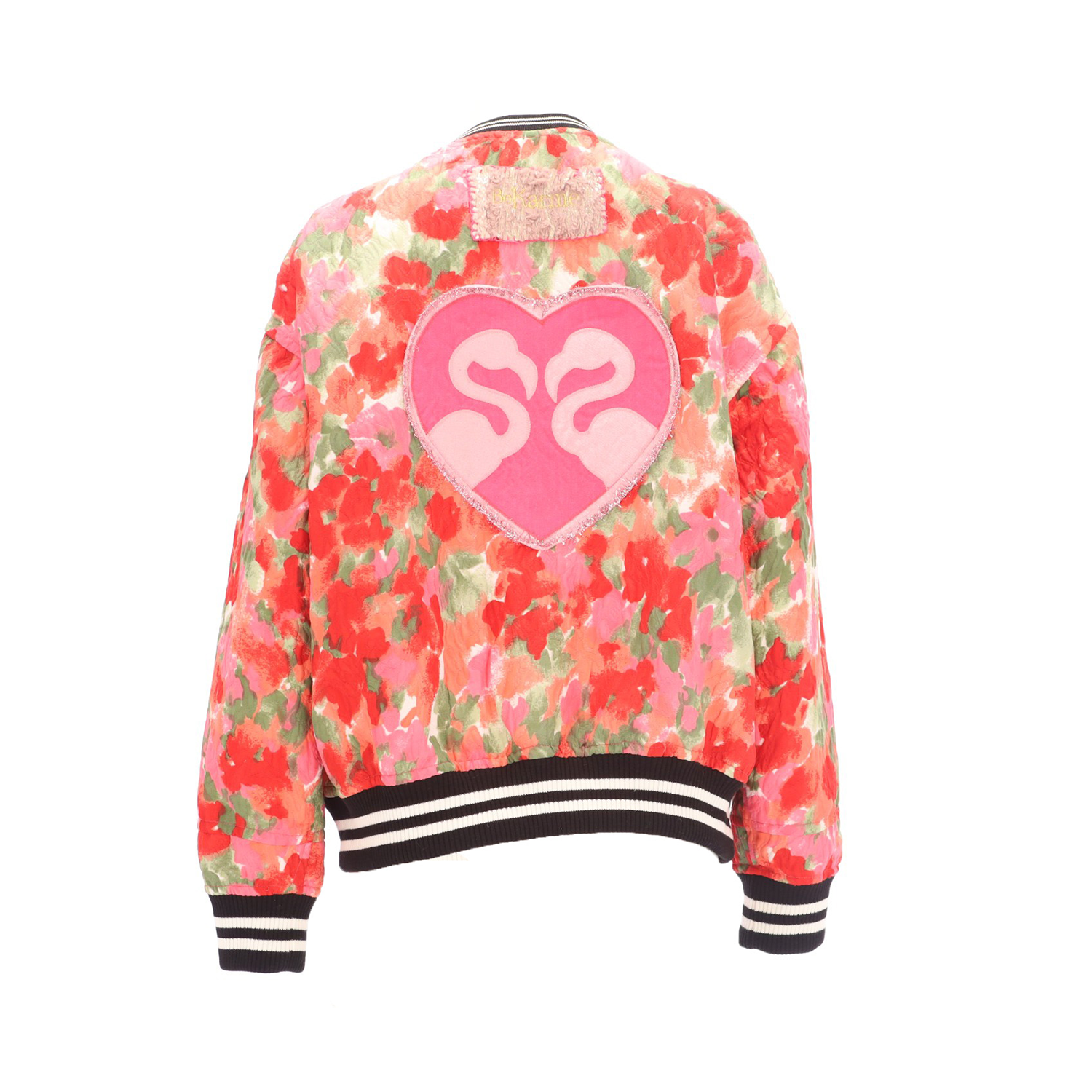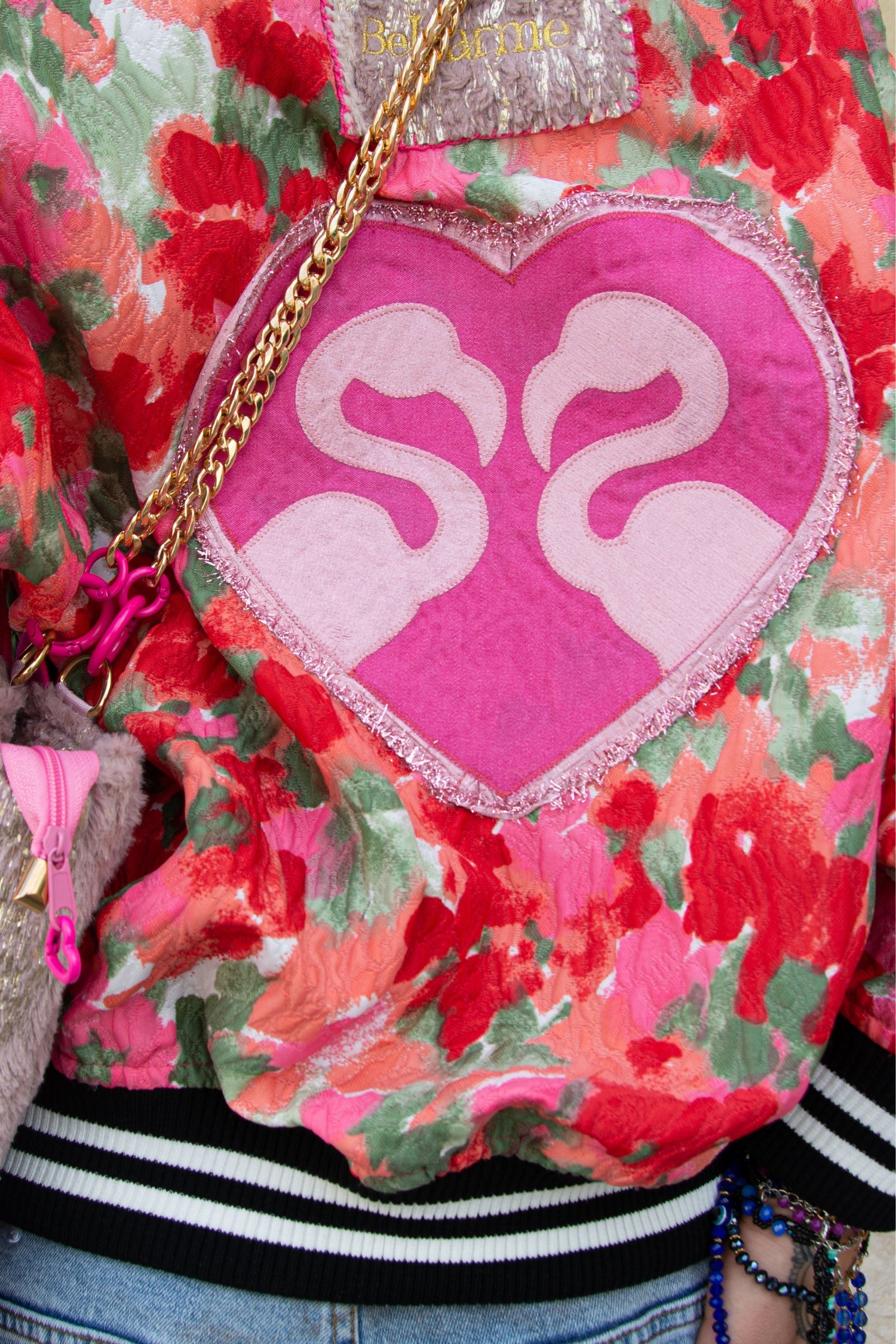 Sudadera oversize de hombro caído, cuello, puños y bajo con elástico deportivo aplicación de corazón con flamencos en la parte trasera, etiqueta de la marca aplicada a mano en la parte superior