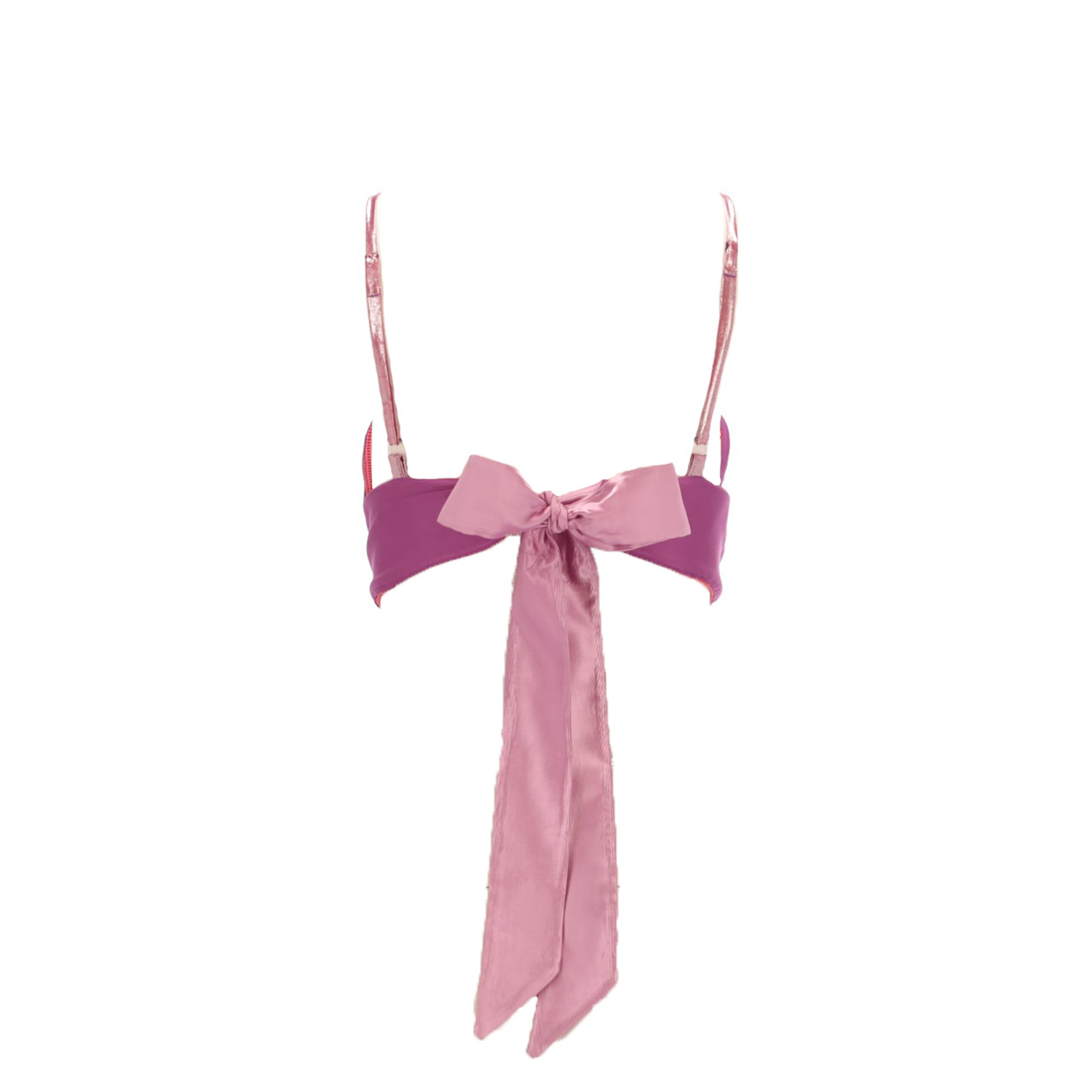 Top triangular reversible , ajustable al cuerpo mediante lazada y tirantes regulables.